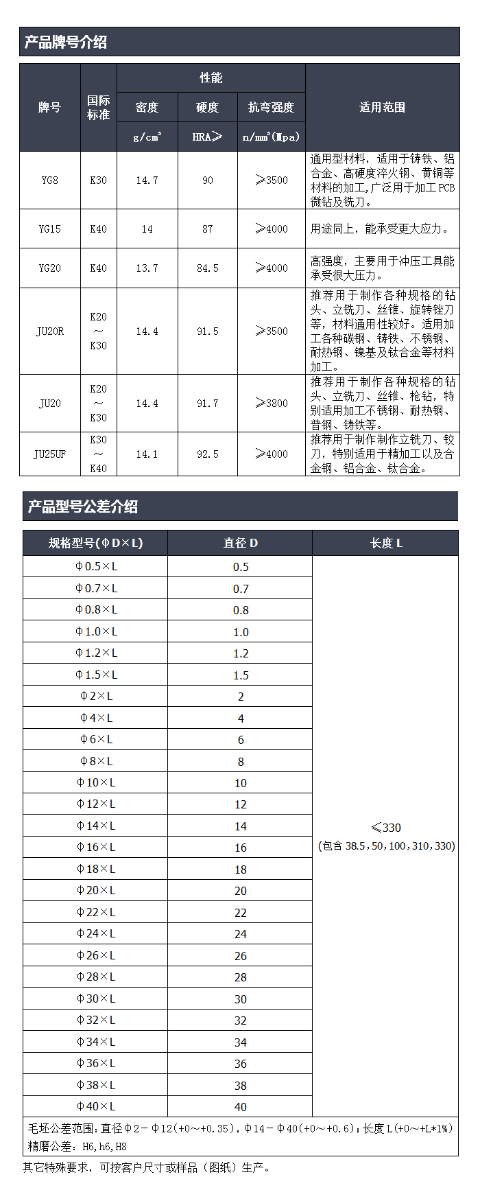 1. 采用含量99.95%高純度原生料碳化鎢粉。 2. 具有較高的硬度,耐磨性好。 3. 硬質合金圓棒即鎢鋼圓棒,又叫鎢鋼棒。 硬質合金圓棒廣泛用于: